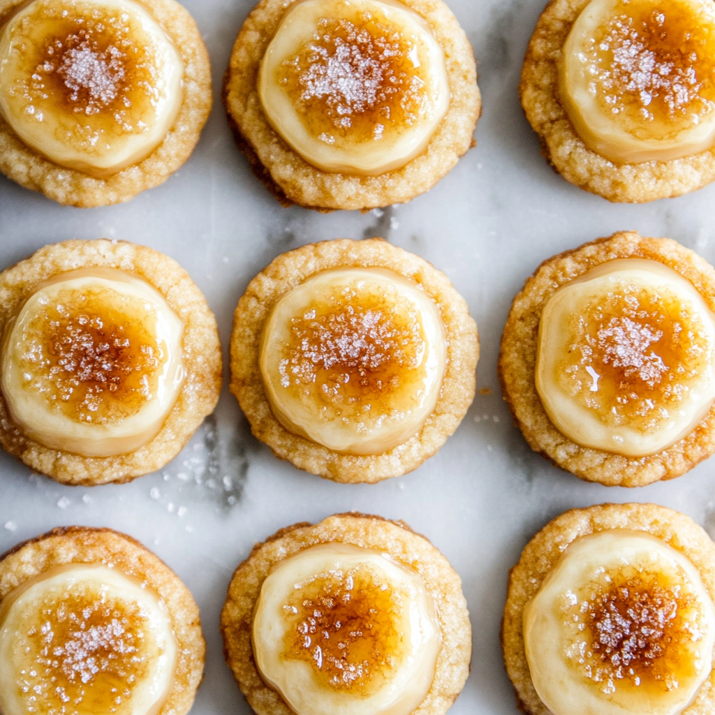 These cookies combine chewy cookie texture with rich vanilla pastry cream, topped with caramelized sugar, offering a delightful twist on traditional creme brûlée.